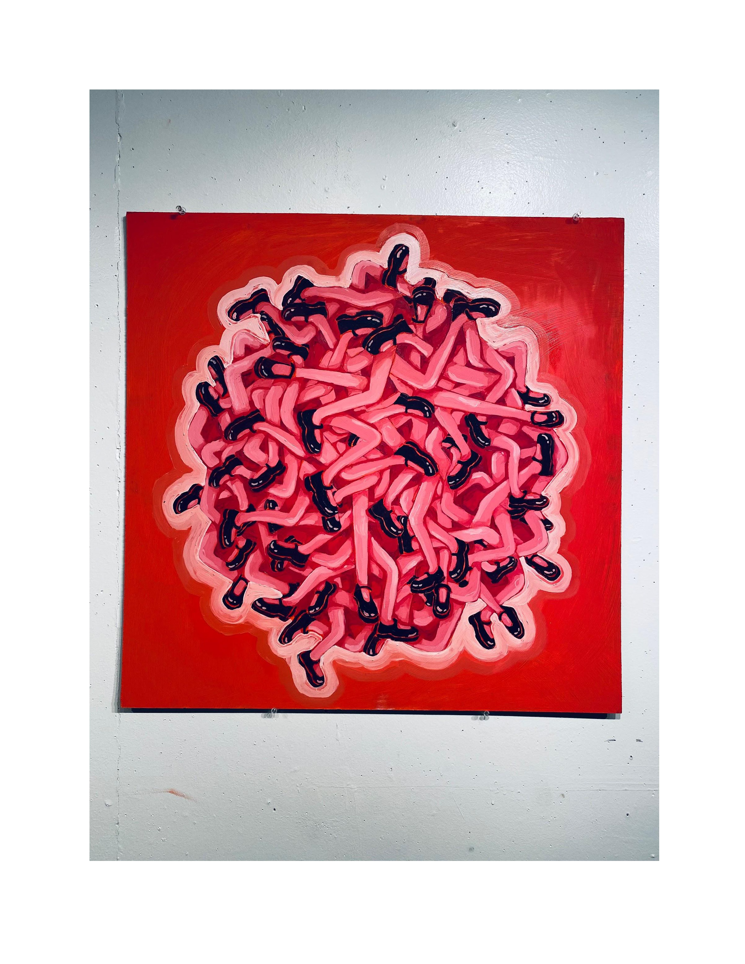 Recently, a prominent aspect of my artistic direction involves nostalgia and innocence. I often depict obscured female figures in a way that invites viewers to unravel the mysteries and confront the disquieting elements lurking beneath the surface. I really enjoy playing around with the tension between the known and the unsettling, between innocence and imminent danger. I am inspired by my own childhood and young adulthood and the slow but eye-opening realization that I was sheltered and naive to the world, coming from a small town and protective but loving parents I attempt to express that relationship with wanting to stay naive to the world while showing the inevitably of growing up and being exposed to it all.