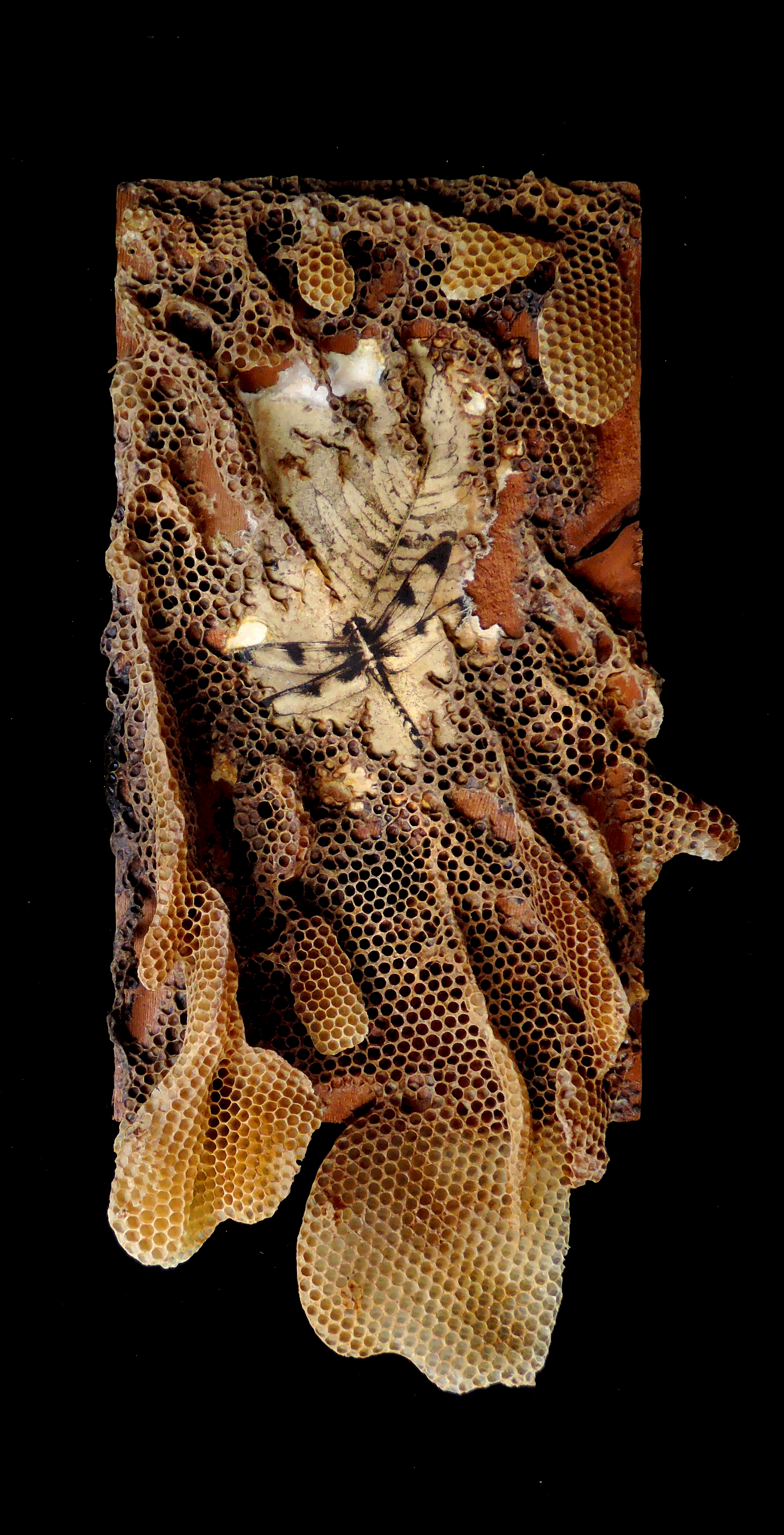 Nature collaborates. In 2014, he contributed to ArtPrize The Great Wall of Bees. In a locked cabinet, 5,000 bees made honeycombs on prints he’d created, introducing a layer of randomness (or seeming randomness). This both deepened the natural themes of his art and made the case that bees are extraordinary, that they matter.